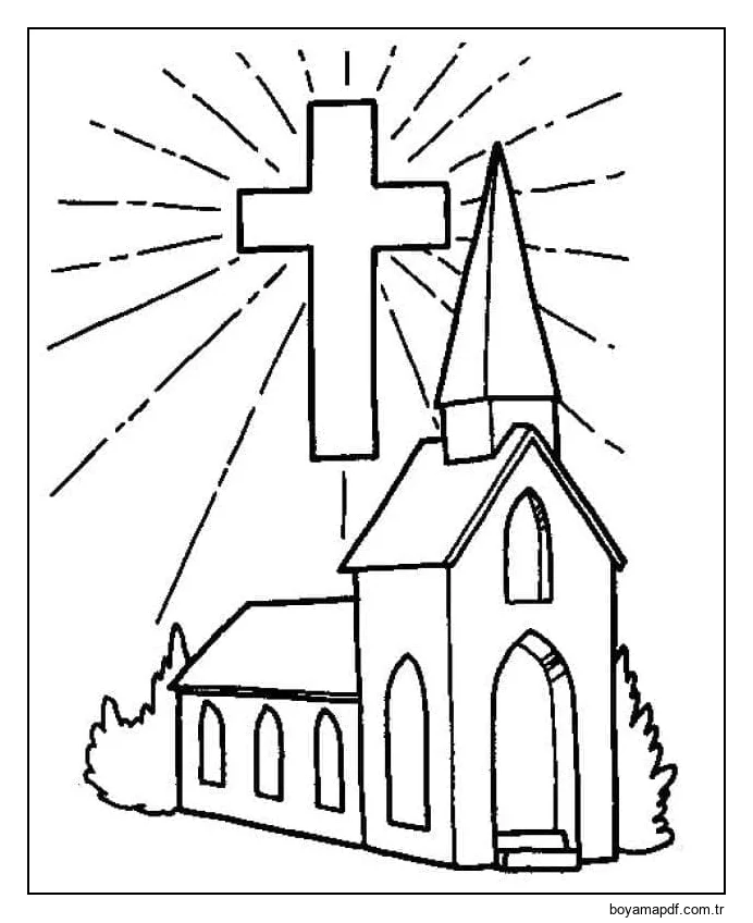 3 Yaş Çocuklar İçin Kilise Boyama Sayfası
