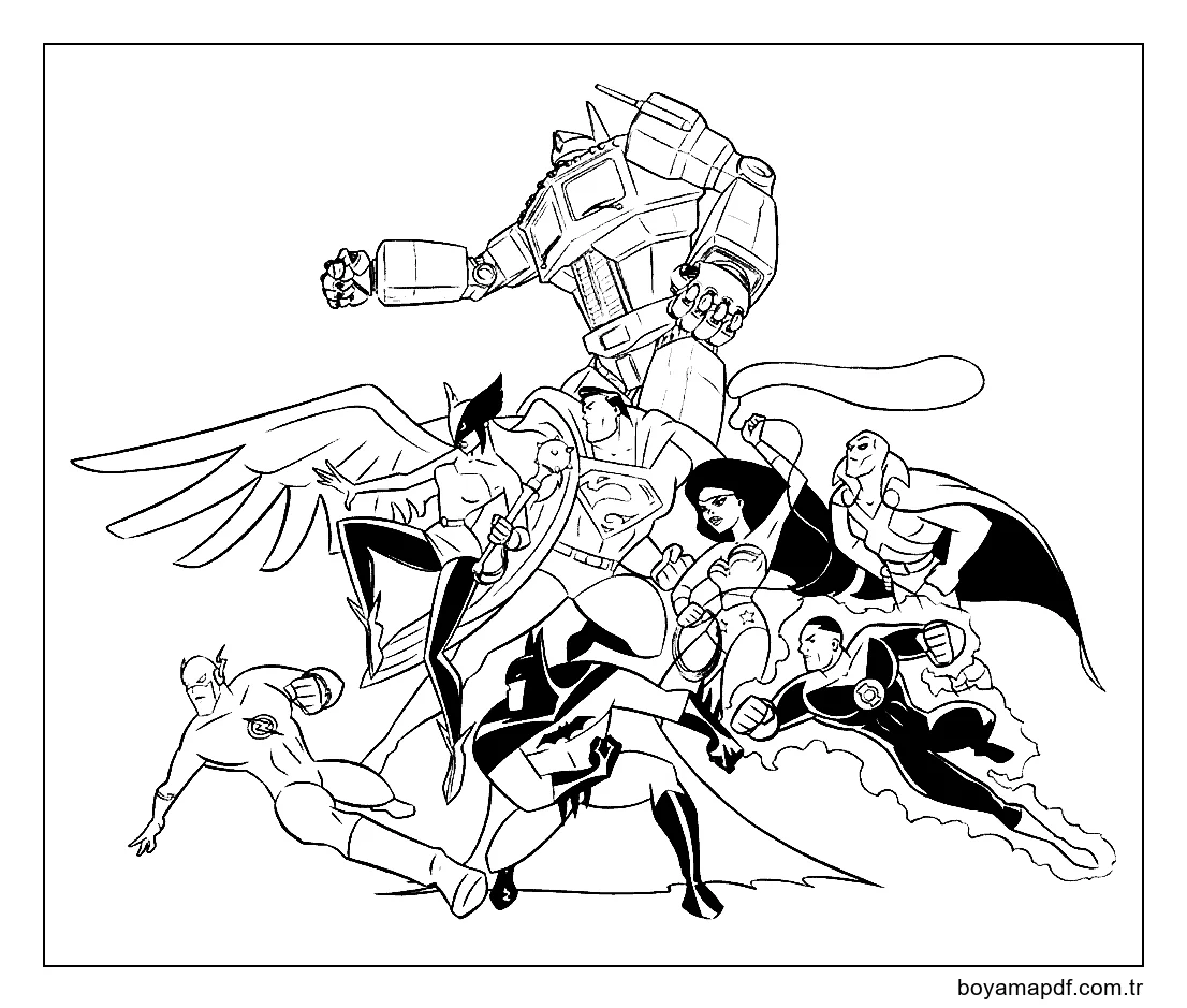 Adalet Birliği Kahramanlarını çiz Boyama Sayfası