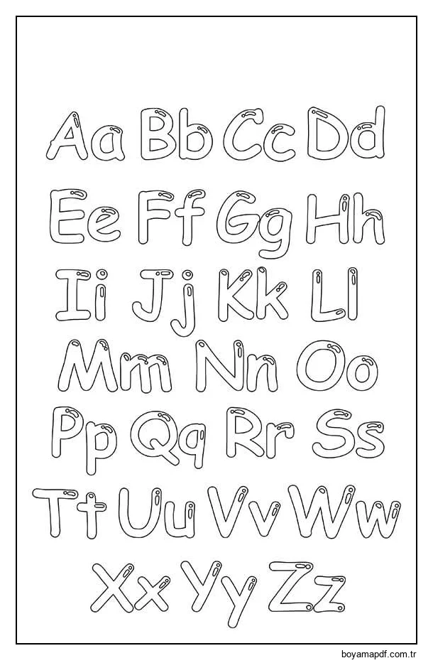 Harf kategorisinde bulunan Alfabe Boyama Sayfası, 610x933 piksel boyutunda, image/webp formatında hazırlanmış bir görseldir. İçerik 18.11.2025 tarihinde BoyamaPDF sistemine eklenmiştir.
