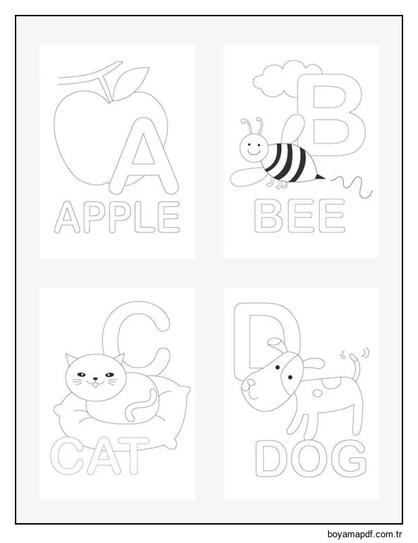 Alfabe Harf A'dan D'ye Boyama Sayfası