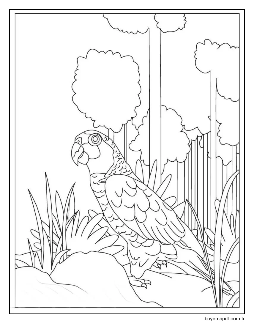 Amerika Papağanı Ayakta Boyama Sayfası