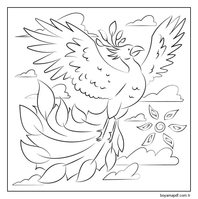 Anka Kuşu Sevimli Boyama Sayfası