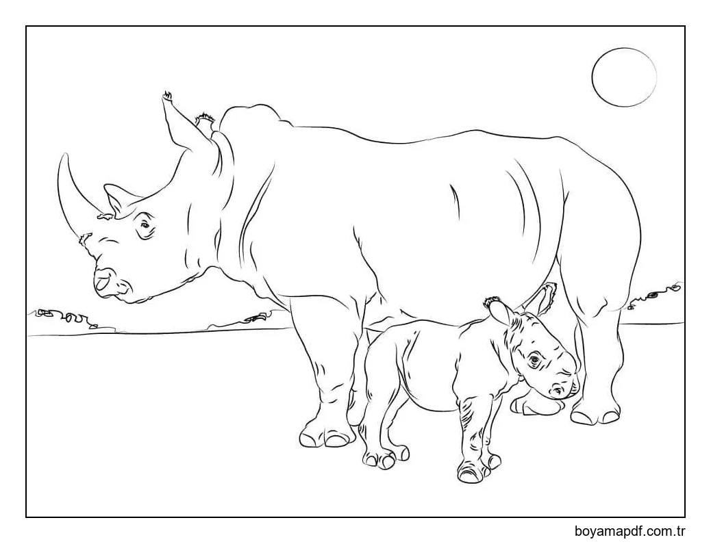 Anne Gergedan ve Bebeği Boyama Sayfası