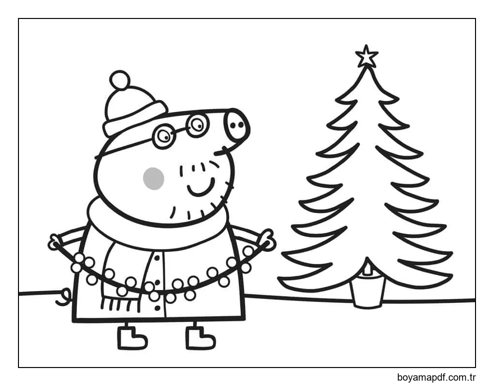 Baba Domuz-Noel Ağacı Ile Boyama Sayfası
