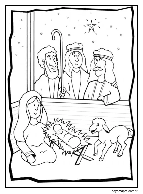 Aynı temaya sahip daha fazla boyama sayfasını görüntülemek için yan alandaki önerileri veya Dogum Sahnesi kategorisini inceleyebilirsiniz.