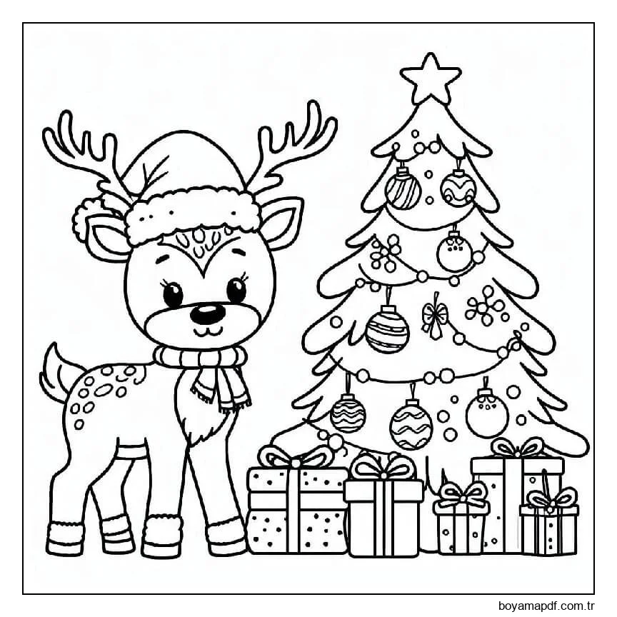 Baskı hediye ren geyiği Boyama Sayfası