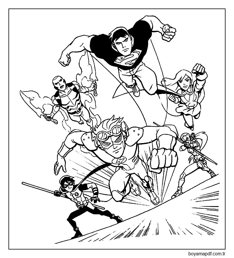 Baskı İçin Justice League'i Çizin Boyama Sayfası