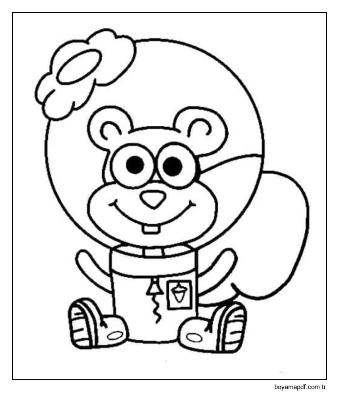 Bebek Sandy Cheeks Oturuyor Boyama Sayfası