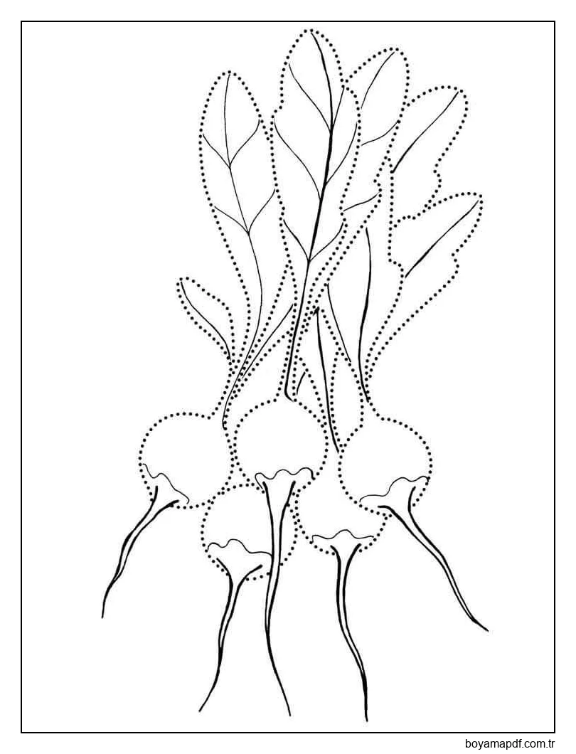 Aynı temaya sahip daha fazla boyama sayfasını görüntülemek için yan alandaki önerileri veya Turp kategorisini inceleyebilirsiniz.