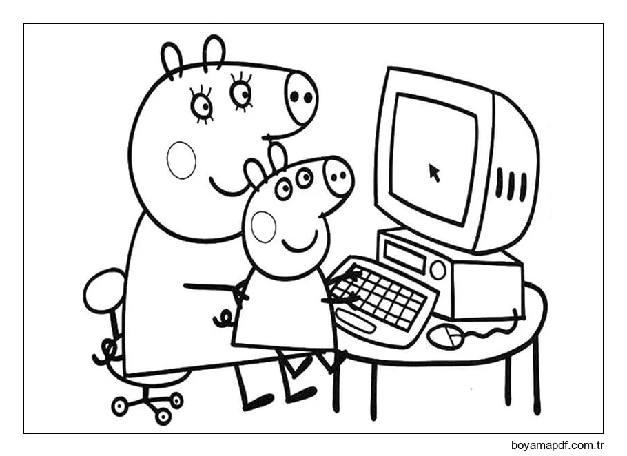 Bilgisayarlı Peppa ve Annem Boyama Sayfası