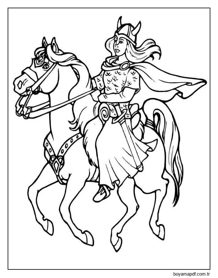 Vikingler kategorisinde bulunan bir at üzerinde Boyama Sayfası, 712x908 piksel boyutunda, image/webp formatında hazırlanmış bir görseldir. İçerik 19.11.2025 tarihinde BoyamaPDF sistemine eklenmiştir.