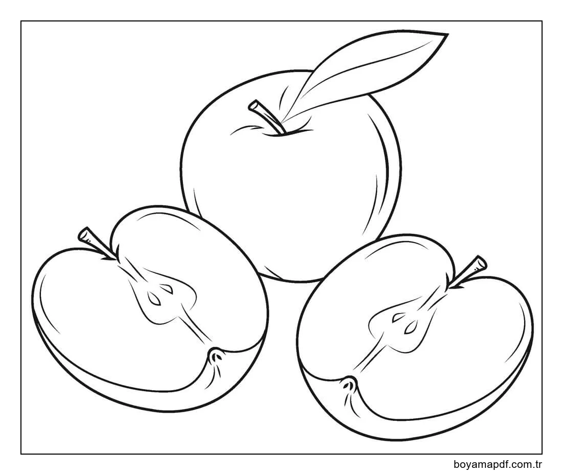 Bir Elma ve iki Dilim Elma Boyama Sayfası