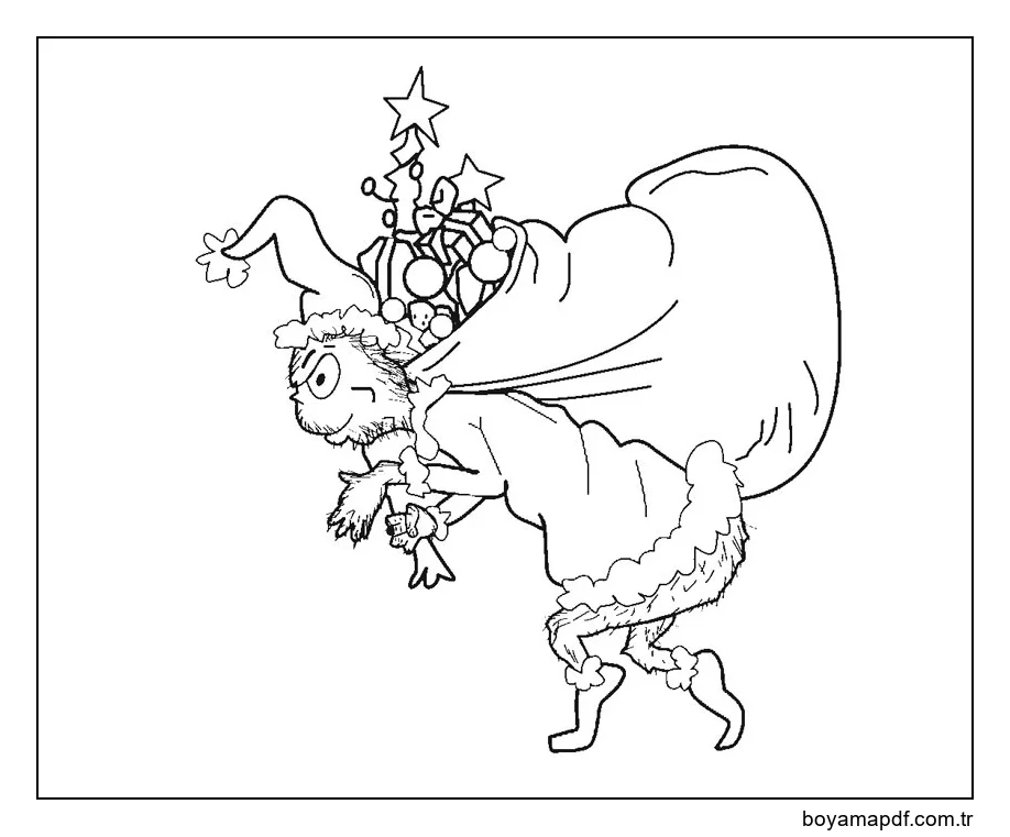 Bir Hediye Çantası Taşıyan Grinch Boyama Sayfası