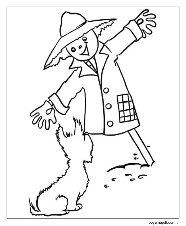 Bir Köpek ve Korkuluk Boyama Sayfası