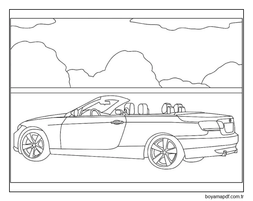 Bulutların arka planında Cabrio BMW Boyama Sayfası