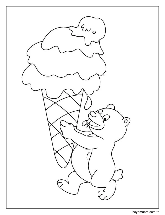 Büyük Dondurmalı Ayı Boyama Sayfası