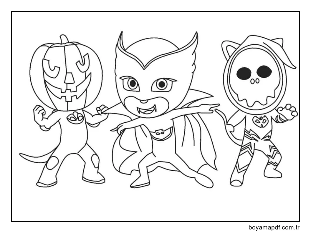 Cadılar Bayramı Pijamaskeliler Boyama Sayfası