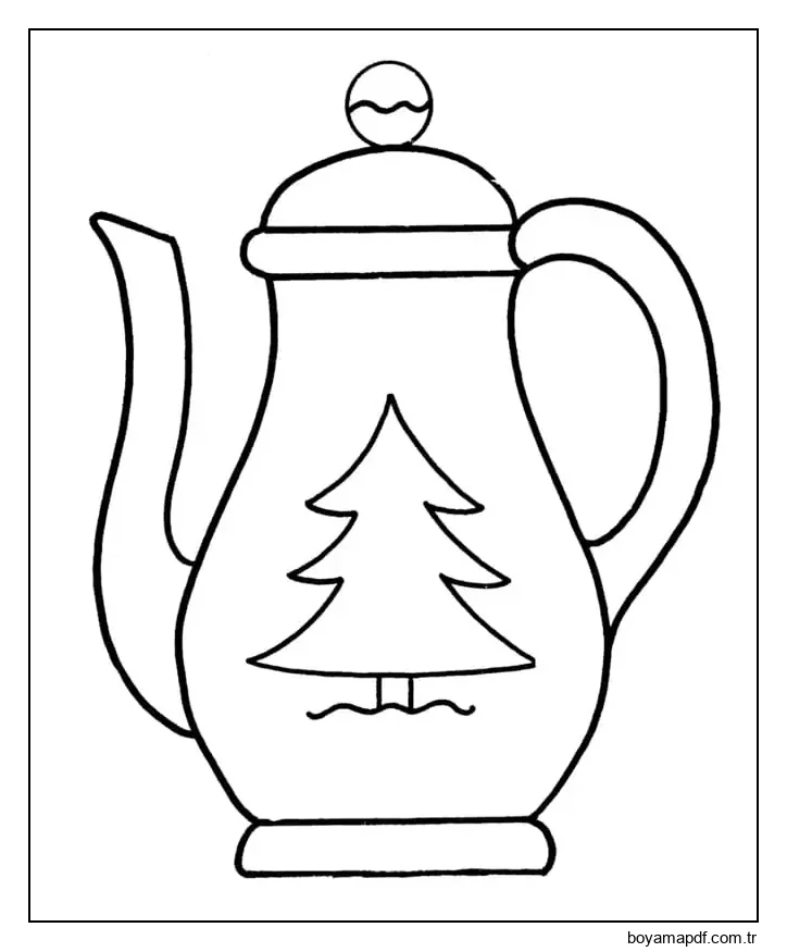 Çam Ağacı ile Çaydanlık Çizimi Boyama Sayfası