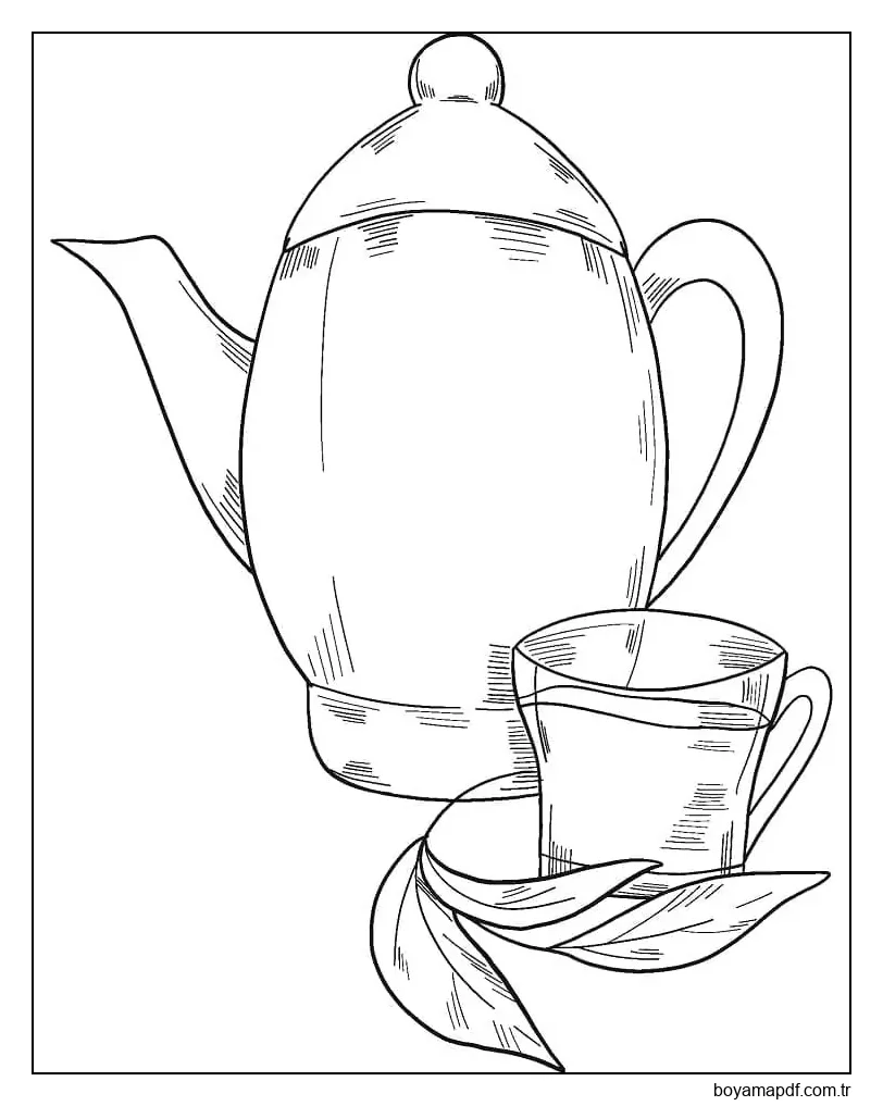 Çaydanlık Çizimi Ücretsiz Yazdırılabilir Boyama Sayfası