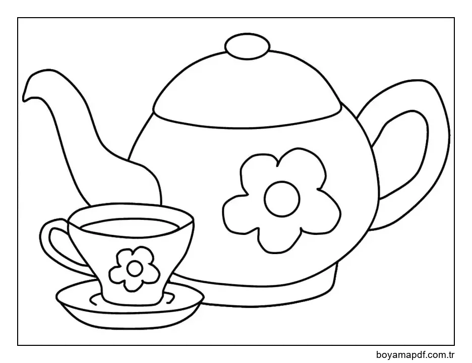 Çaydanlık ve Bardak Çizimi Boyama Sayfası