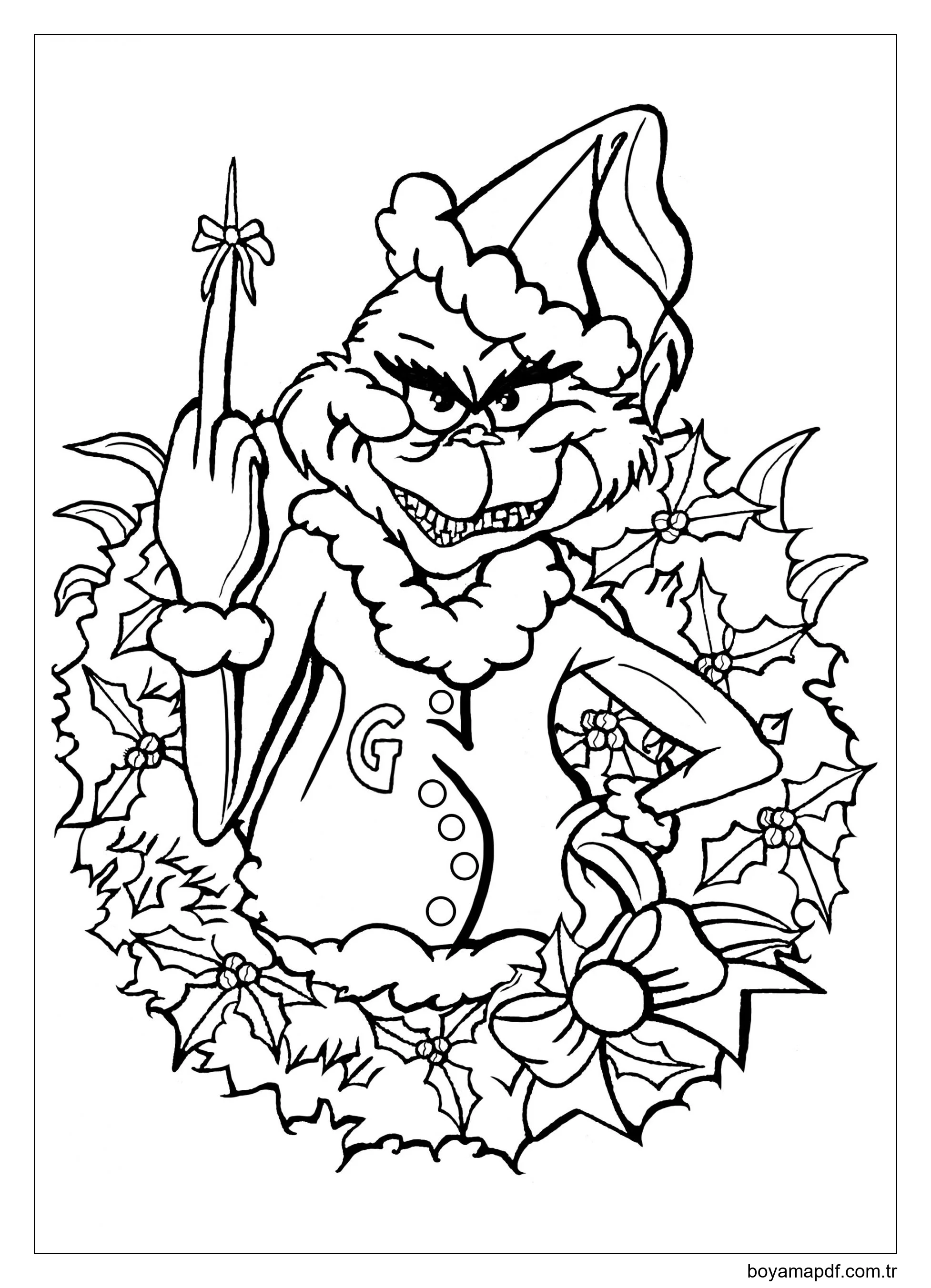 Çelenk ile Korkunç Grinch Boyama Sayfası