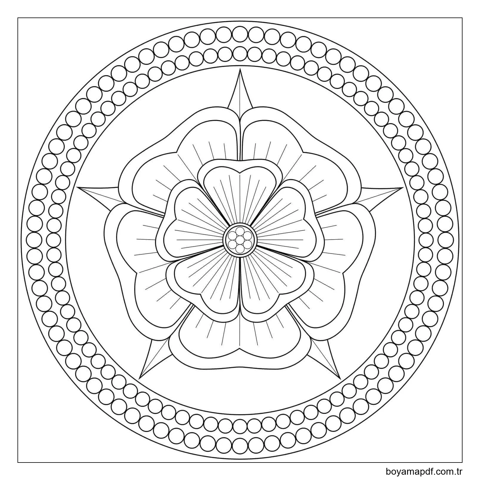 Çiçekler Mandala Çemberi Boyama Sayfası