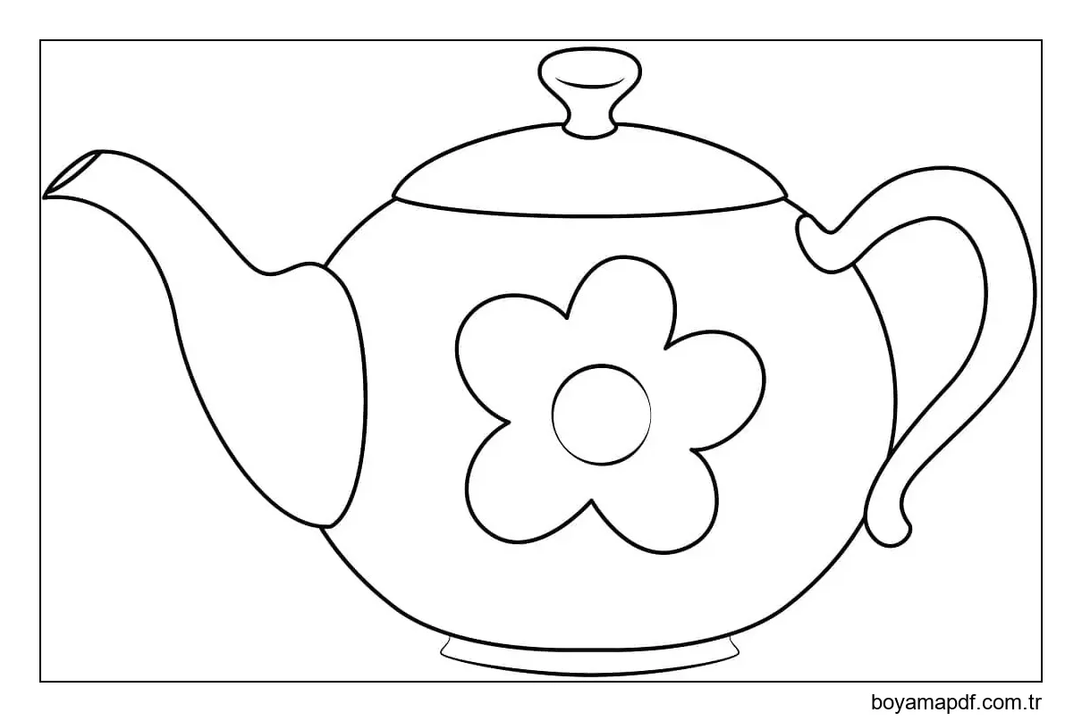 Çiçekli Çaydanlık Çizimi Boyama Sayfası