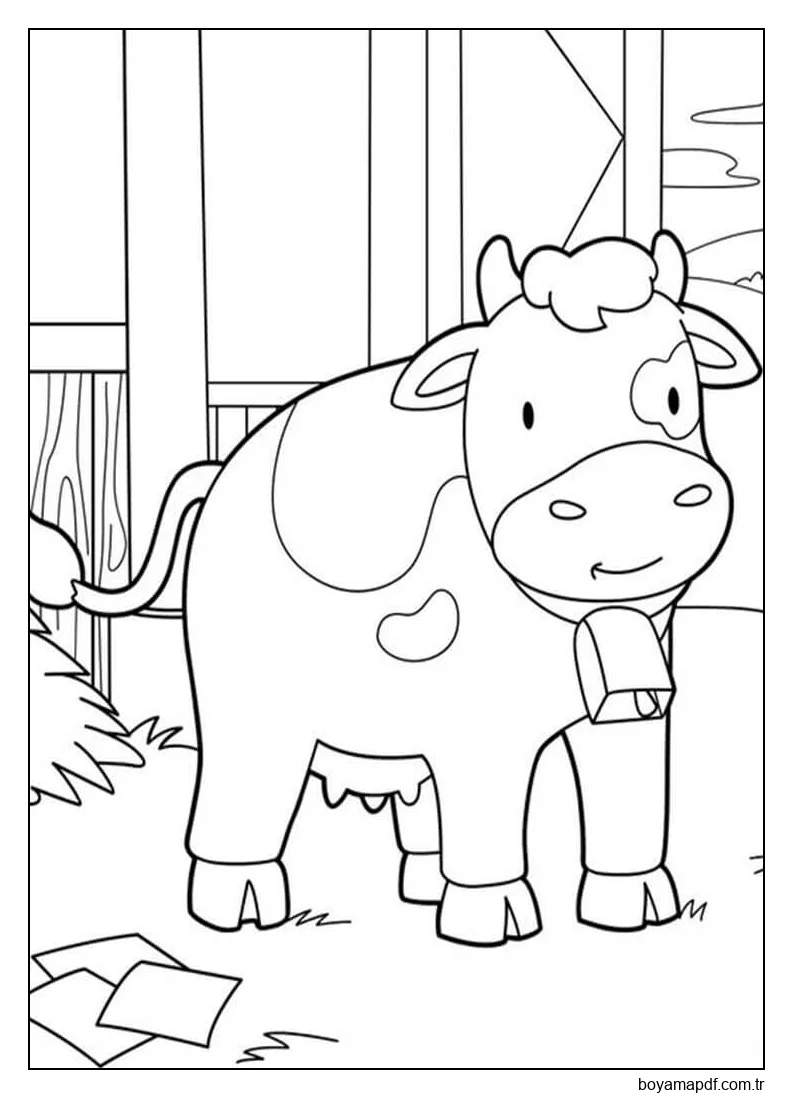 Çiftlikte Sevimli Inek Boyama Sayfası