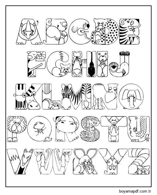 Çılgın Hayvanat Bahçesi Alfabesi Boyama Sayfası