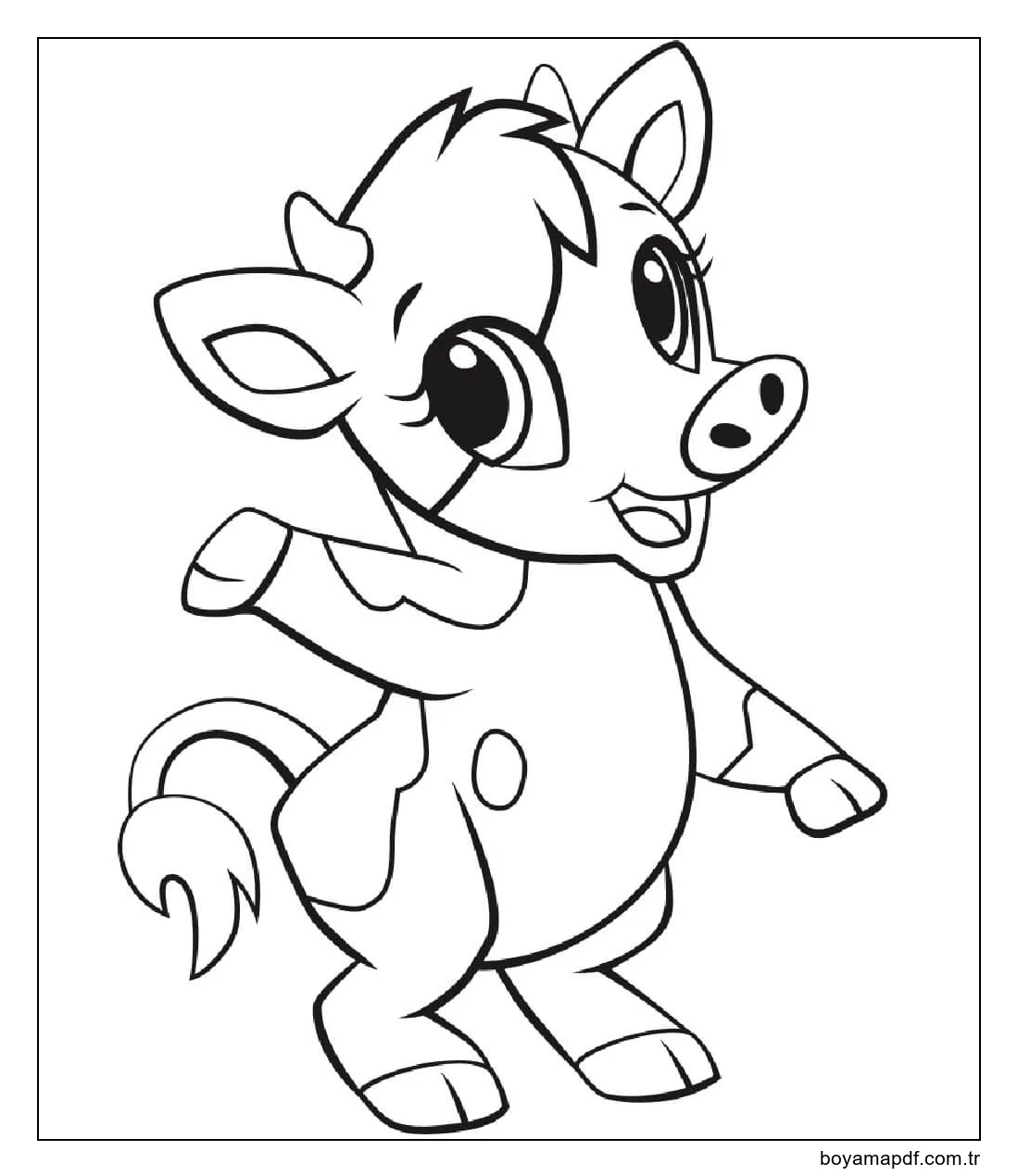 Çizgi Film İnek Ayakta Boyama Sayfası