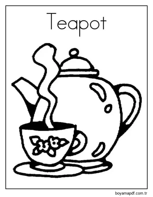Çizim Fincanı ve Çaydanlık Boyama Sayfası
