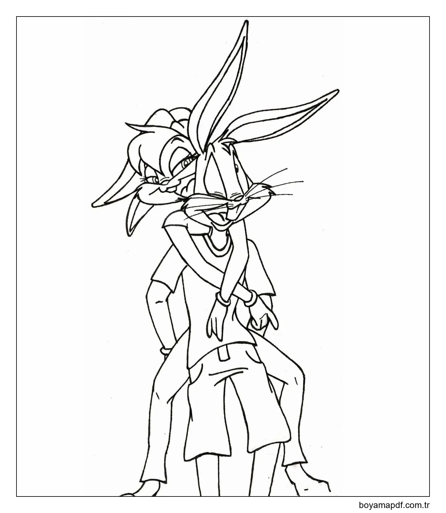 Çizmek Bugs Bunny sırtında taşıyor Lola Bunny Boyama Sayfası