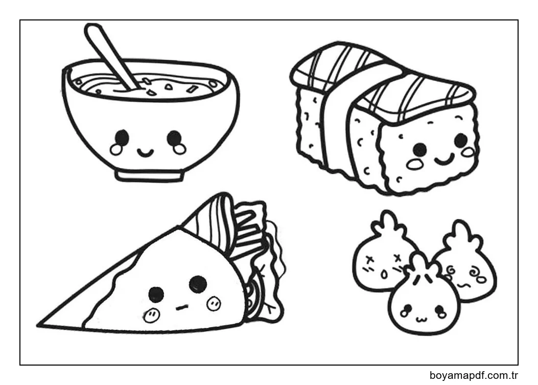 Çizmek Kawaii Yemek kolay Boyama Sayfası
