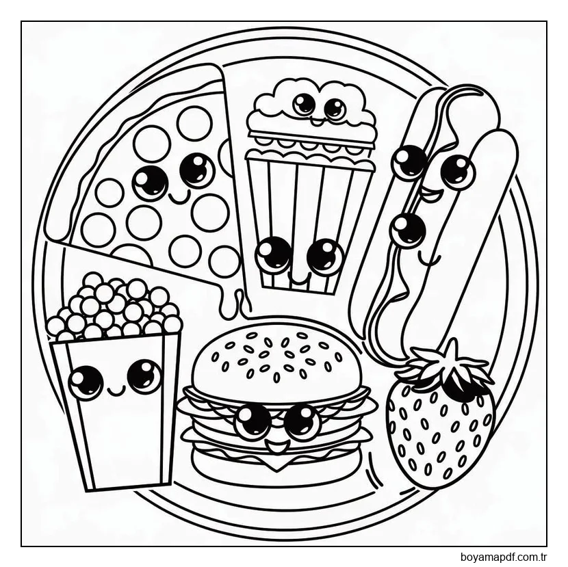 Çizmek Kawaii Yemek yazdırılabilir Kolay Boyama Sayfası