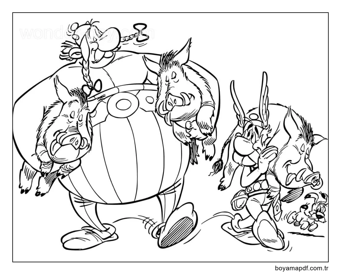 Çocuklar İçin Bedava Asteriks ve Oburiks Boyama Sayfası