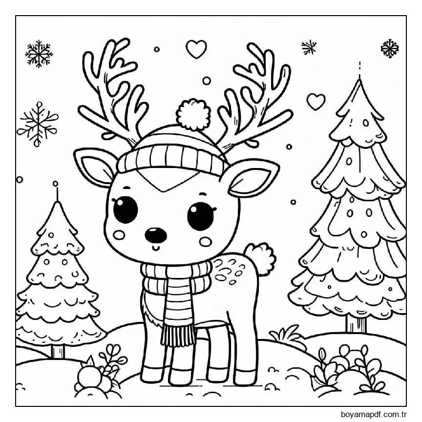 Çocuklar için bedava ren geyiği Boyama Sayfası