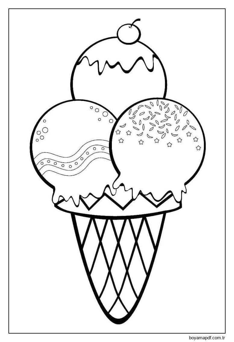 Çocuklar İçin Dondurma Ücretsiz Boyama Sayfası