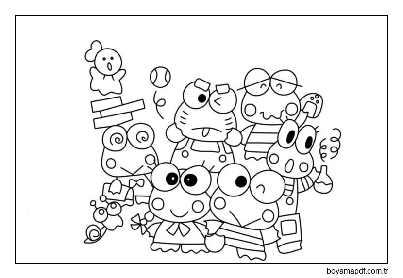 Aynı temaya sahip daha fazla boyama sayfasını görüntülemek için yan alandaki önerileri veya Keroppi kategorisini inceleyebilirsiniz.