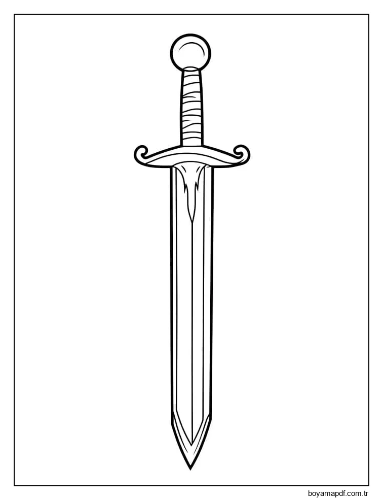 Çocuklar İçin Yazdırılabilir Kılıç Boyama Sayfası