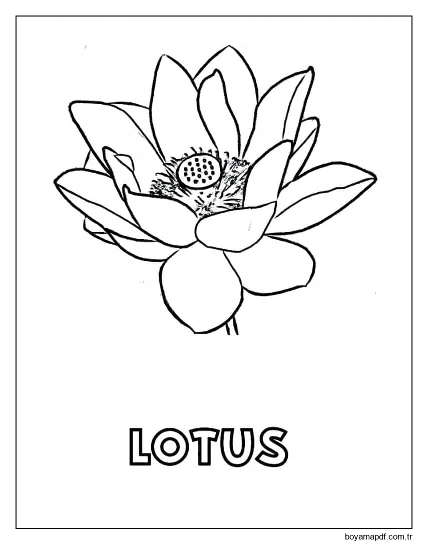 Çocuklar İçin Yazdırılabilir Lotus Boyama Sayfası
