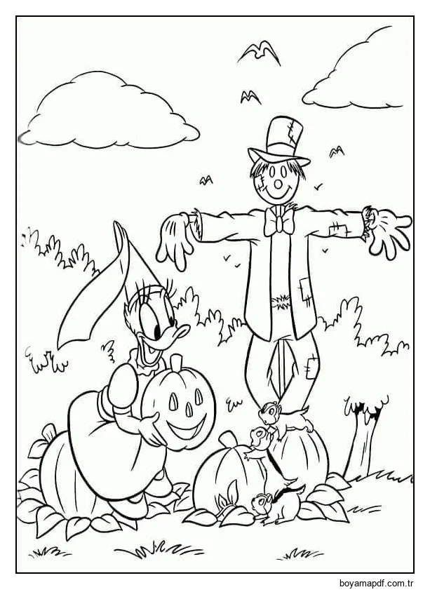 Daisy Duck ve Balkabağı Boyama Sayfası