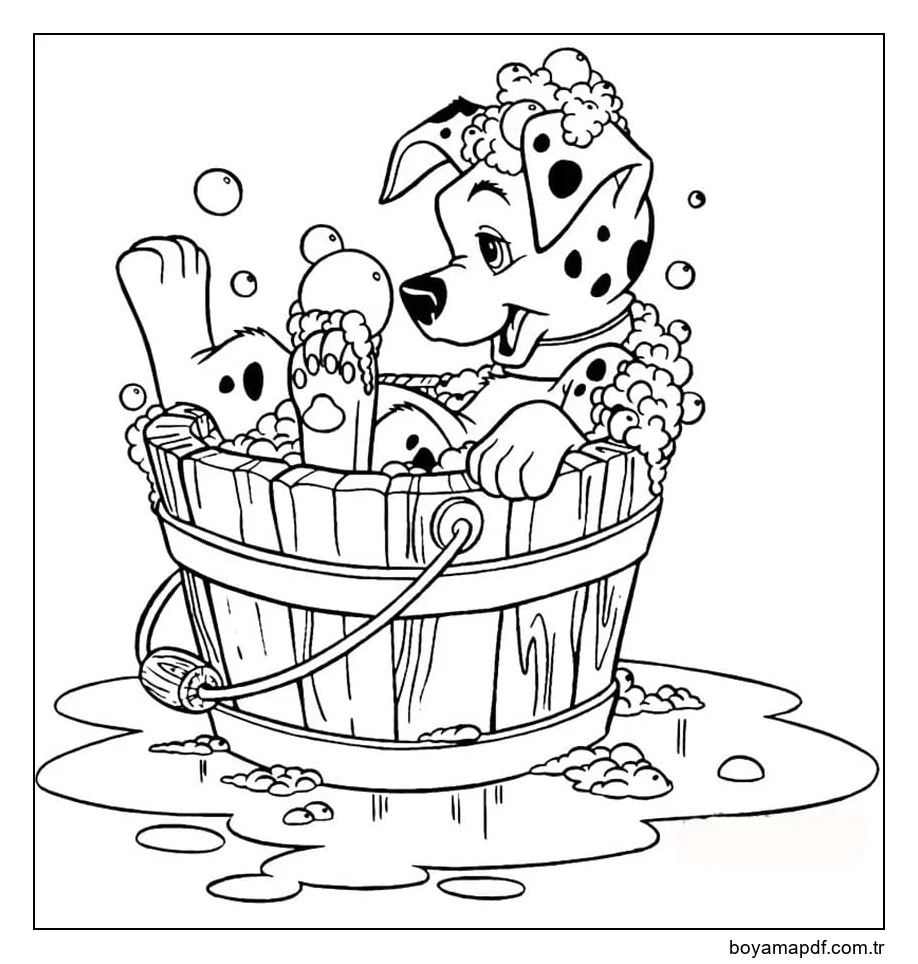 Dalmatian içeride Banyo Boyama Sayfası