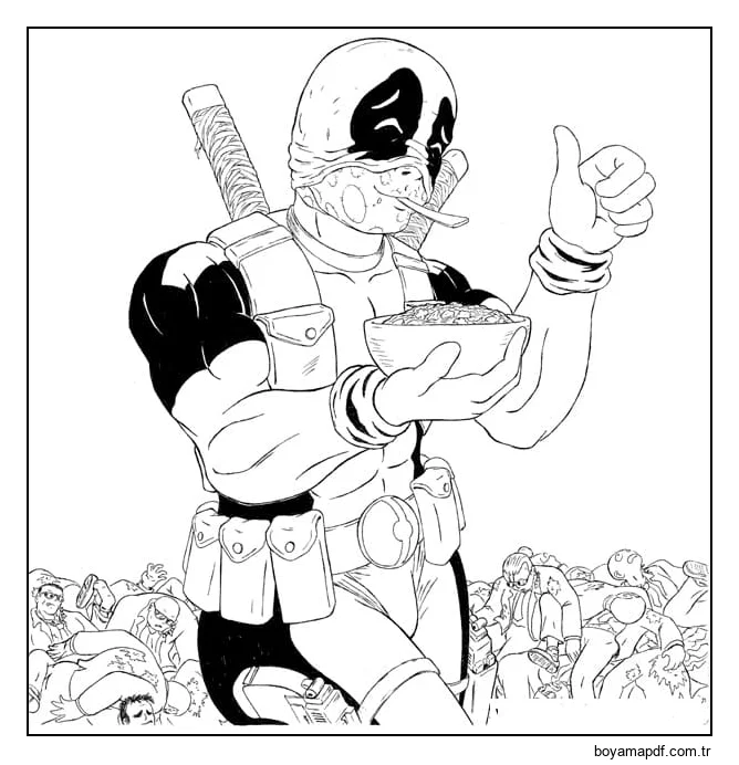 Deadpool'un Yemek Yemesini Çiz Boyama Sayfası