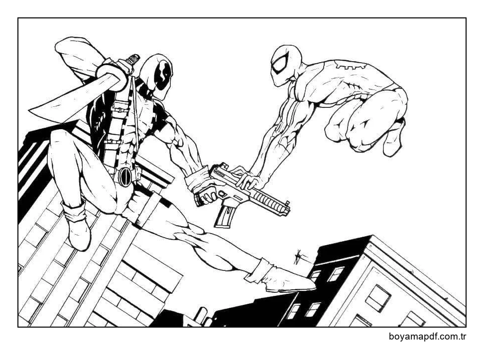 Deadpool ve Örümcek Adam'ı çiz Boyama Sayfası