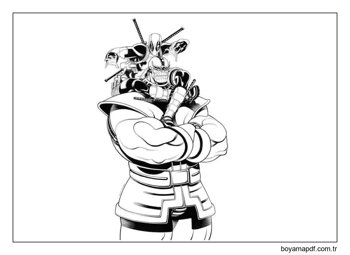 Aynı temaya sahip daha fazla boyama sayfasını görüntülemek için yan alandaki önerileri veya Deadpool kategorisini inceleyebilirsiniz.