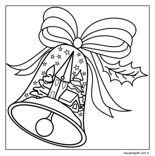 Desenli parlak kırmızı çan. Boyama Sayfası