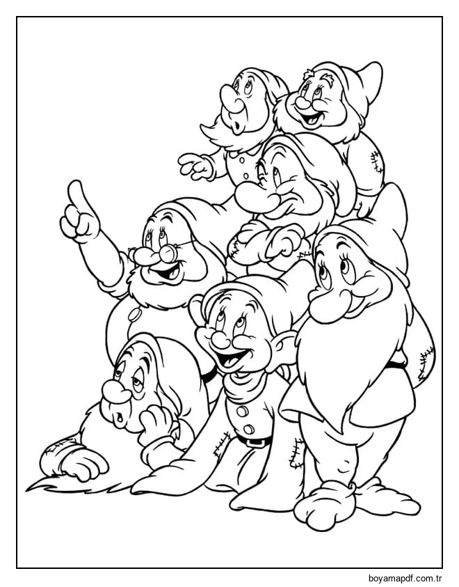 Disney Pamuk Prenses'ten Yedi Cüceler Boyama Sayfası