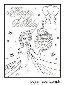 Doğum Günü Pastası ile Elsa Boyama Sayfası
