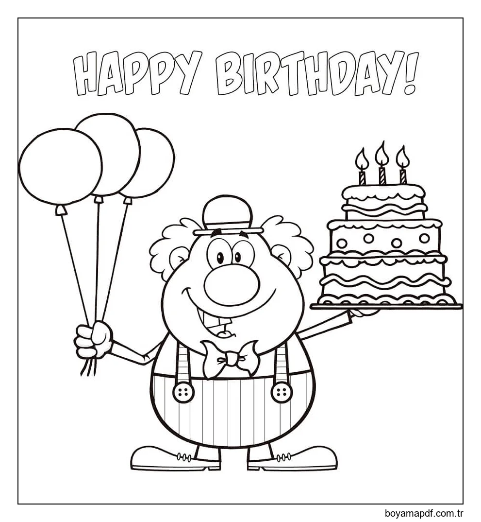 Doğum Günün Kutlu Olsun Palyaço Boyama Sayfası