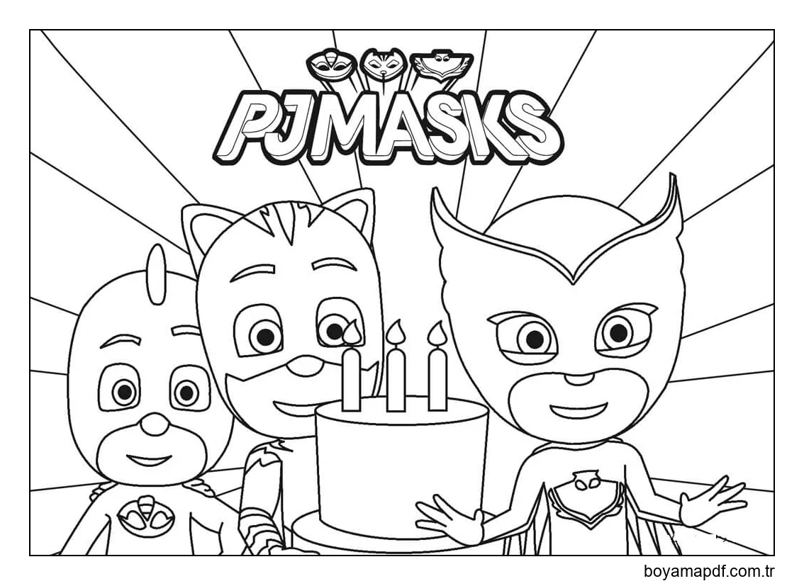 Doğum Günün Kutlu Olsun Pijamaskeliler Maskesi Boyama Sayfası